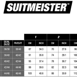 Pakken van Suitmeister zijn getailleerd en vallen niet groot. Bij twijfel tussen twee maten adviseren we je om de grootste van de twee te kiezen. Bekijk voor meer informatie de maattabel.
