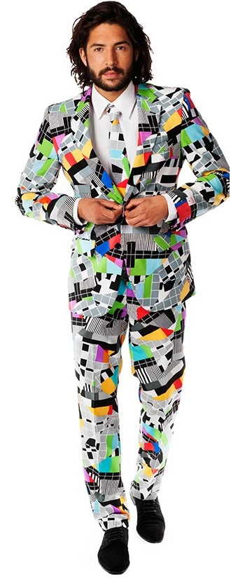 Met dit retro kostuum laat jij iedereen denken aan die goede oude tijd toen het testbeeld nog frequent te zien was op tv. De combinatie van kleurrijk, gaaf en retro maken dit kostuum een echte topper!