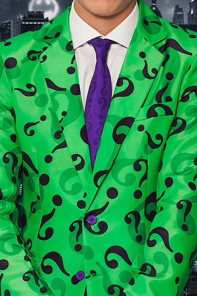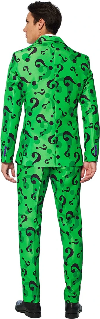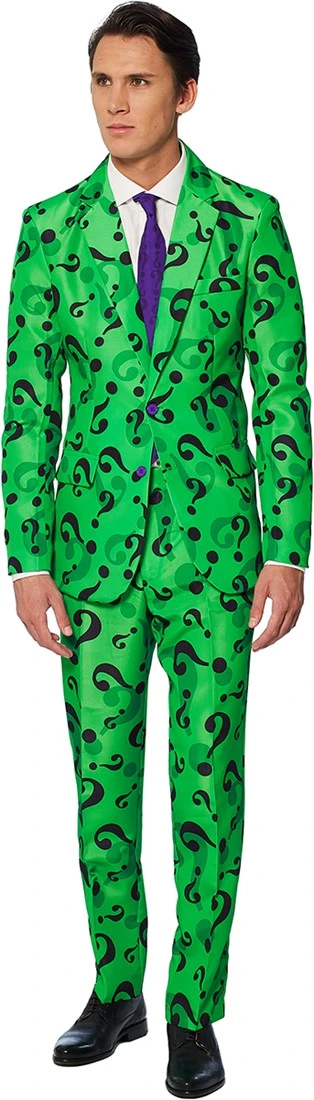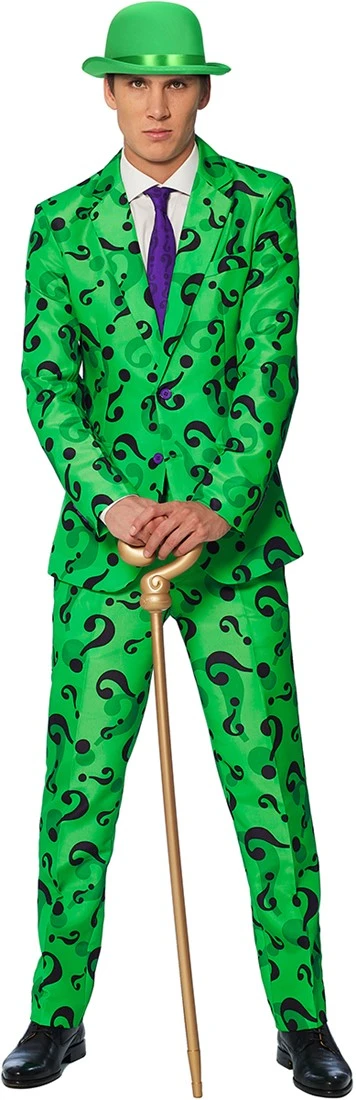 Ik zie, ik zie wat jij niet ziet…en het is…groen. Dit The Riddler kostuum van Suitsmeister maakt van jou het geheimzinnigste mysterie van de dansvloer. Je kunt vragen stellen wat je wilt, maar een ding is zeker: Dit kostuum staat voor 100% feestgarantie!
