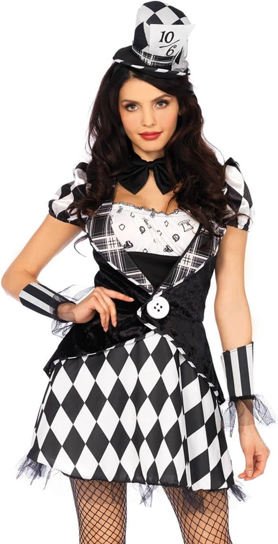 Een prachtig zwart wit kostuum van de Mad Hatter. Dit kostuum is afkomstig uit de Wonderland collectie.