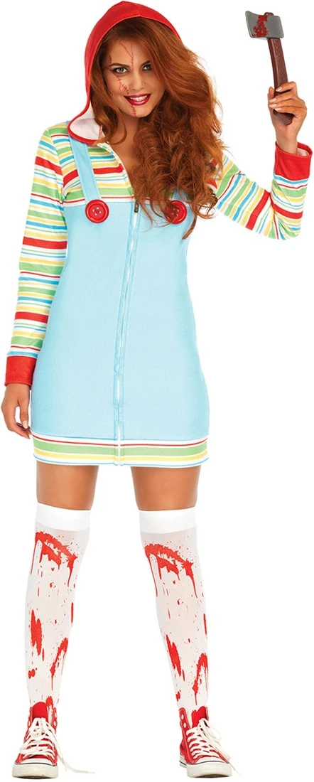 Je laat het lijken alsof het kinderspel is om zo eng te zijn in dit iconische moorddadige poppenkostuum. Grijp je meest moorddadige vrienden en feest erop los.