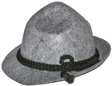 Een mooie Bayernhoed van grijze vilt met een donker koord.