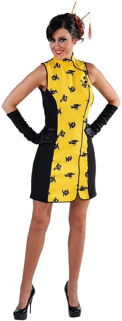 Details: de randen van het jurkje zijn afgewerkt met zwart band en rechts bovenin zitten ter decoratie 2 knoopjes