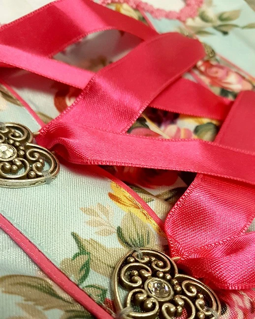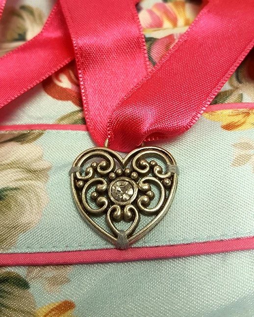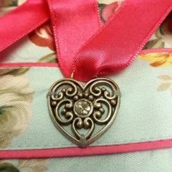 Decoratie: metalen details in de vorm van een hartje met daarin diamantjes verwerkt