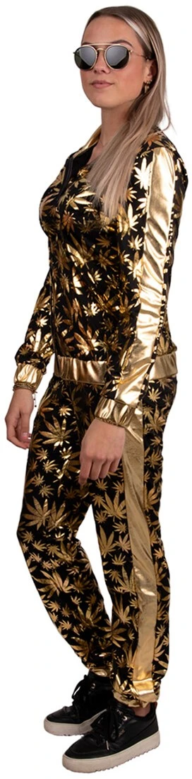 Details: in de mouwen, zoom van het jasje en uiteinde van de broekspijpen zit een elastiek