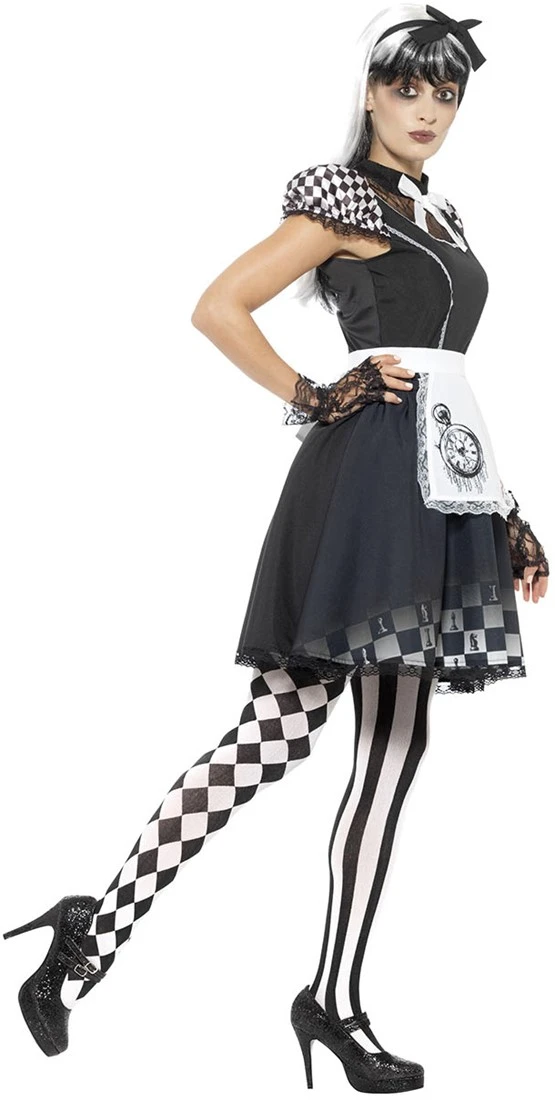 Ga met dit zwart/witte jurkje verkleed als de duistere variant van Alice in Wonderland!