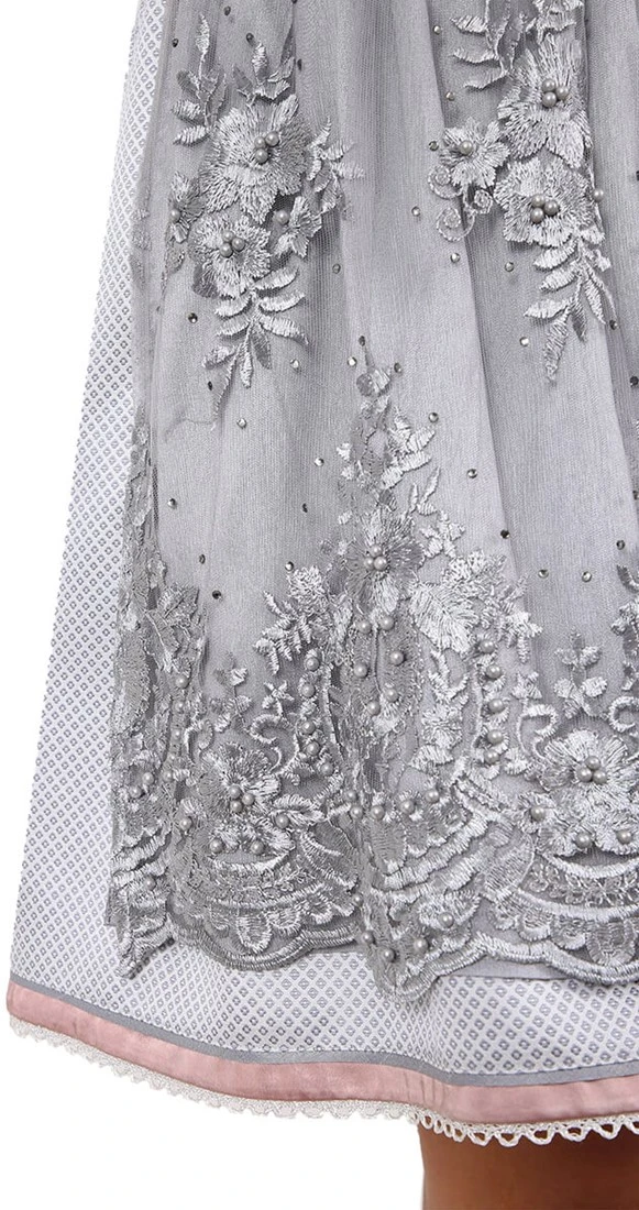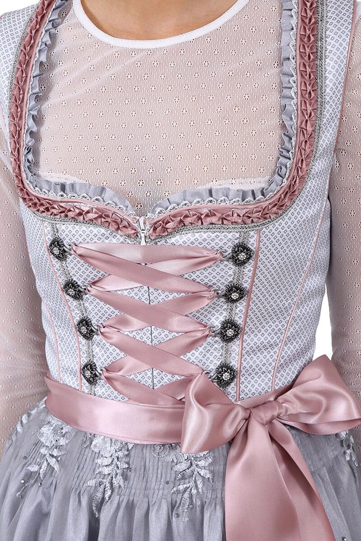 Details dirndl: hart vormige hals die is versierd met bewerkt lint