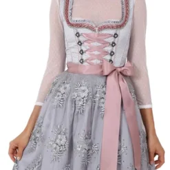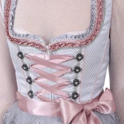 Details dirndl: hart vormige hals die is versierd met bewerkt lint