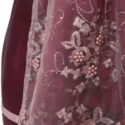 Details schort: transparant, bloemen borduurwerk en afgewerkt met kraaltjes