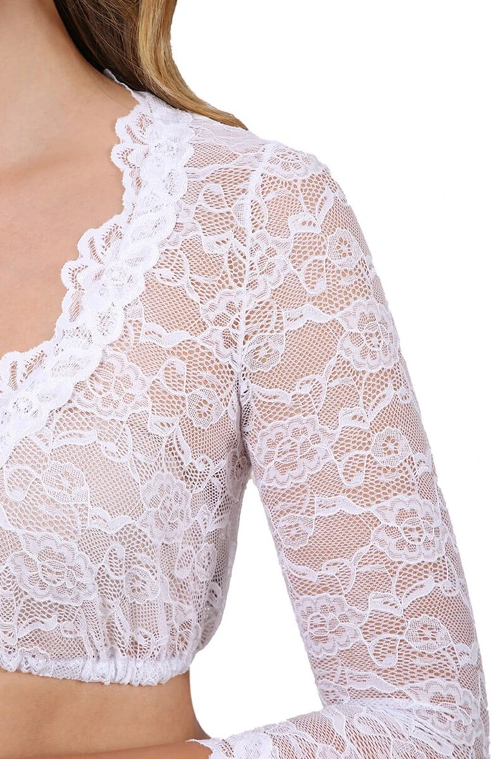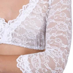Details: transparant kant met versieringen op de V halslijn om het decolleté benadrukken en een 3/4 mouw