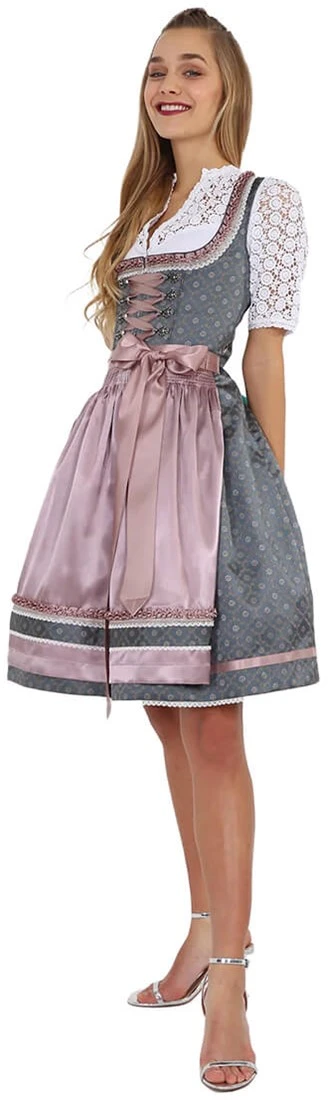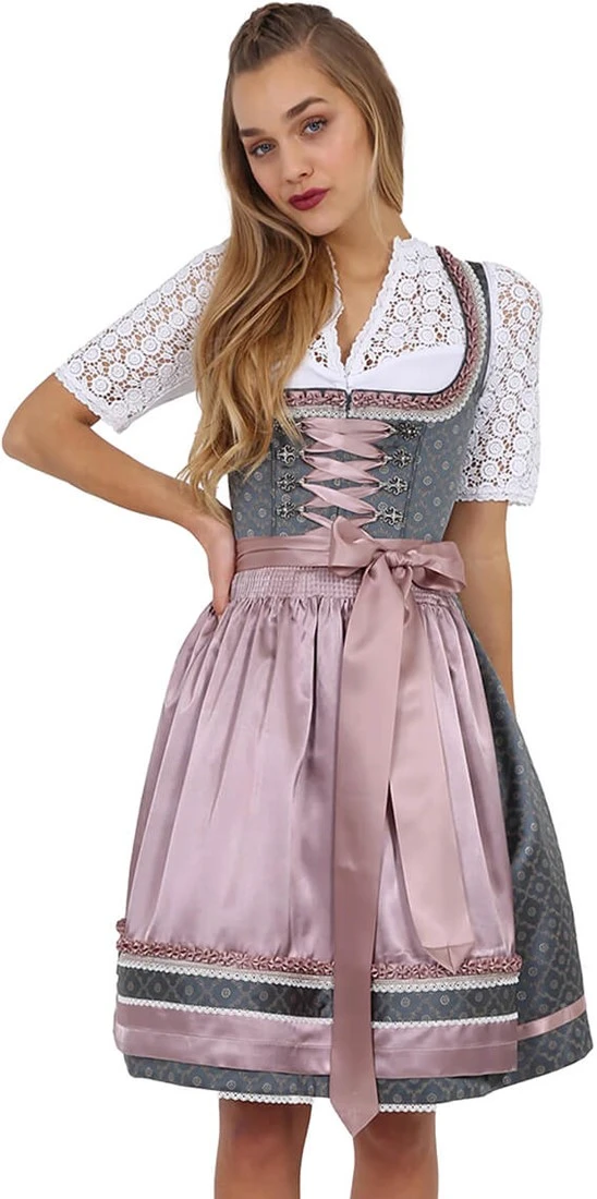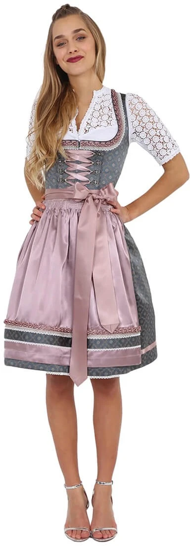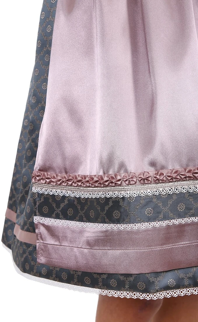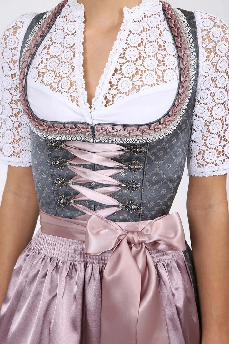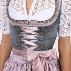 Details dirndl: rechte halslijn die versierd is met een vlecht langs de decolleté