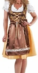 Mooie luxe tiroler oufit voor dames, bestaande uit een jurk, een schort en een losse blouse.