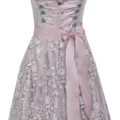 Details: hartvormige halslijn versierd met ruches. Door de miederhaakjes met strass een satijnen lint