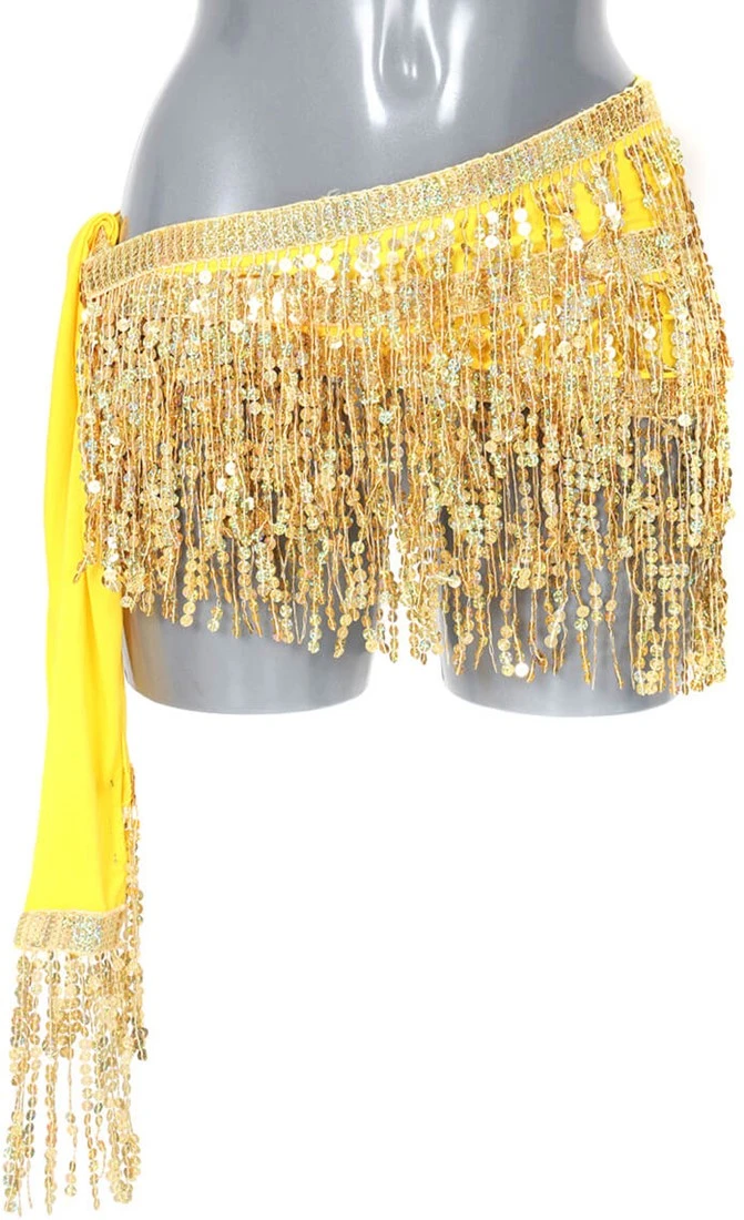 Details: de rand aan de bovenkant en de franjes zijn versierd met gouden holografische pailletten