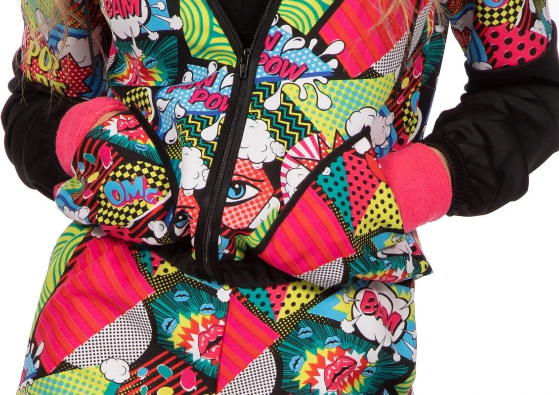 Dit hippe trainingspak met hoodie is de perfecte outfit voor jouw foute party of 80’s of 90’s feest. Ook tijdens een Kamping Kitsch festival kom je met deze Pop Art print opvallend goed voor de dag.