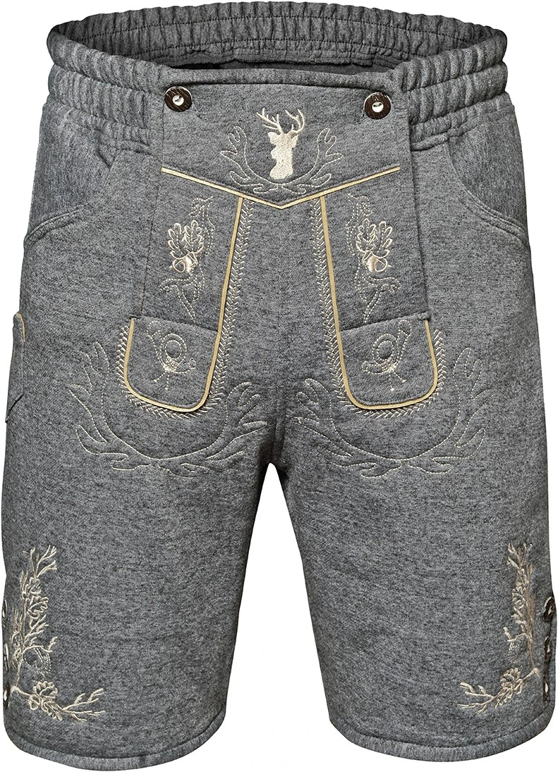 Deze stoere lederhose zit heerlijk comfortabel omdat hij gemaakt is van joggingstof, maar zeker goed te dragen bij een oktoberfest.