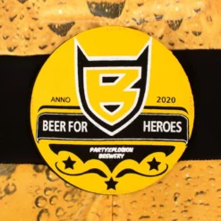 Details overall: voorgevormde spierbundel met de letter B op de borst, aan de armen oren van een bierglas.