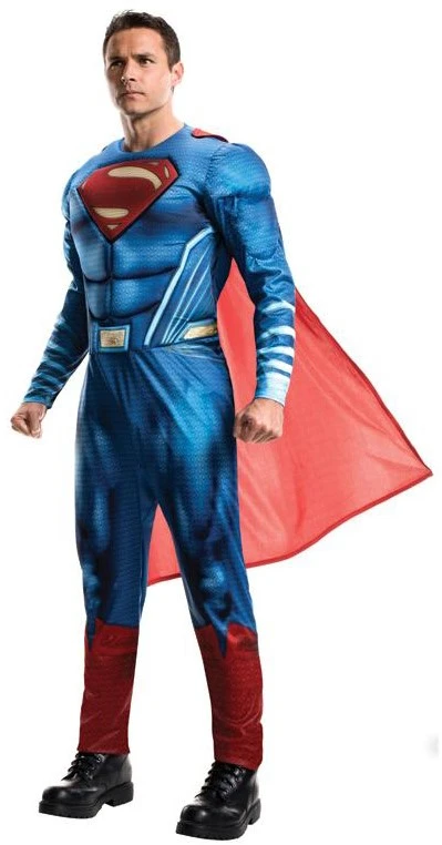 Met dit pak ga jij verkleed als de Superman uit de bekende film Batman v Superman: Dawn of Justice! Het pak is een jumpsuit met spieren op het lichaam, en wordt geleverd inclusief de cape.