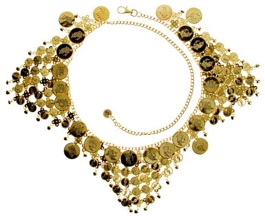 Details: aan de bovenkant zitten grotere muntjes, de muntjes daaronder zijn wat kleiner, ook zitten er kleine belletjes aan