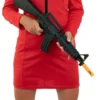 Detail: het lijkt alsof het gele teddybeertje uit de zak van het jurkje steekt