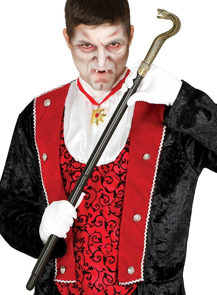 Ga je als Egyptenaar verkleed? Of verkleed je je toch als pooier/pimp.. Dan is deze staf met goudkleurige cobra kop bijna onmisbaar. Deze stok is in z’n totaliteit 80 centimeter lang. De stok bestaat uit drie delen en is door de delen in elkaar te schroeven samen te stellen. Het gedeelte met de goudkleurige knop is 22 centimeter lang en de andere twee zwarte delen per stuk 34 centimeter.