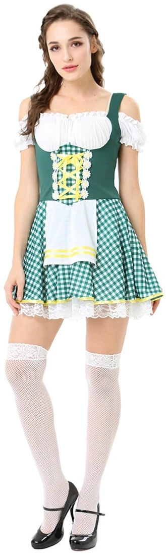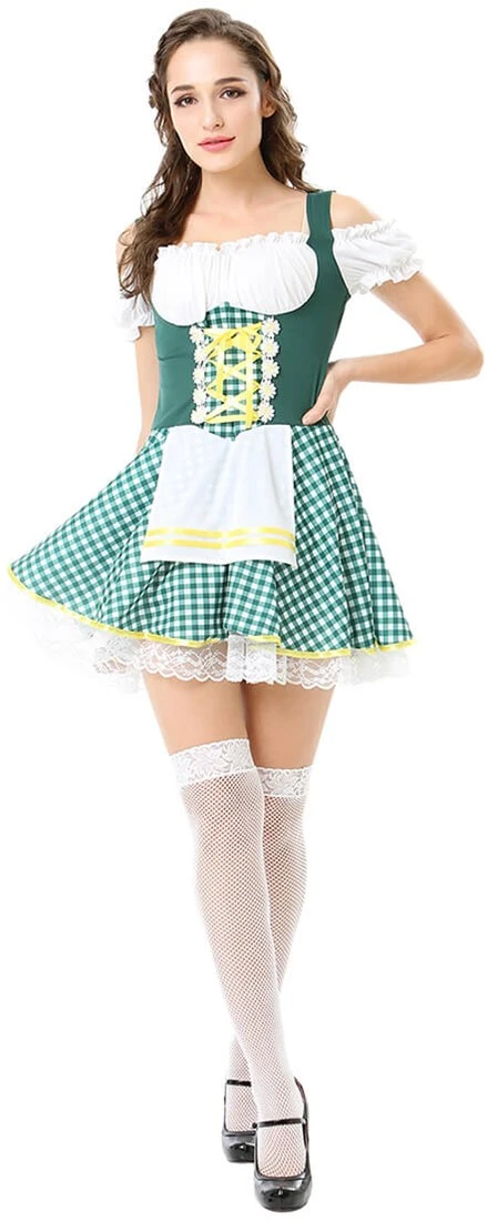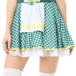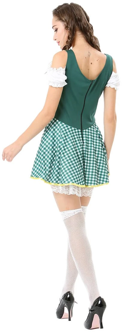 Details: de blouse, jurk en schort zitten aan elkaar vast