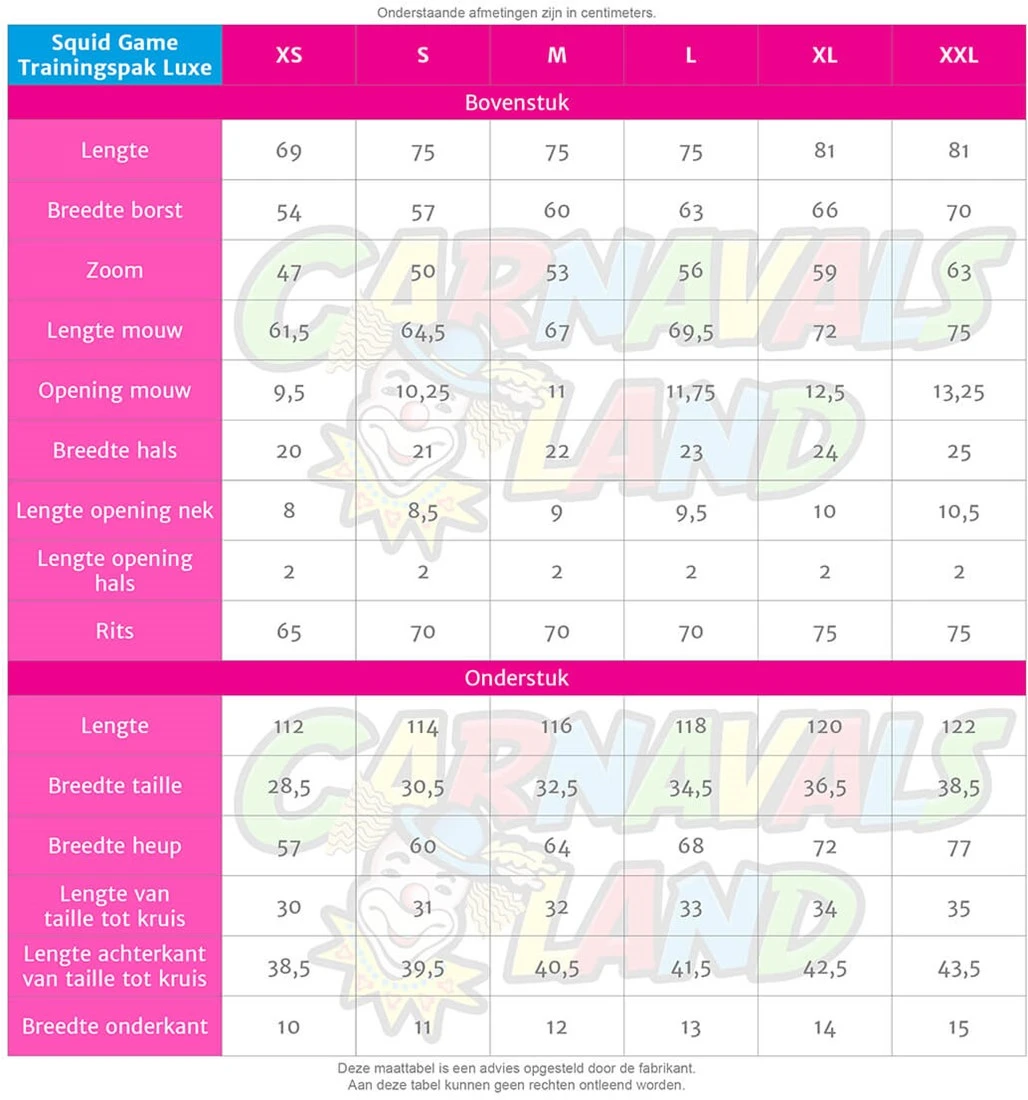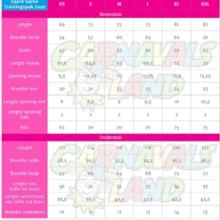 Let op: dit trainingspak kan gedragen worden door zowel mannen als vrouwen. Wij raden aan de maattabel te raadplegen voor de juiste maat.