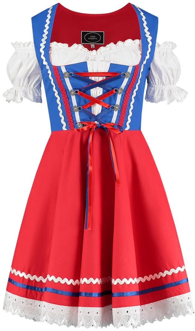Deze vrolijke dirndl met zeer populair design is uitstekend geschikt voor elk oktoberfest.