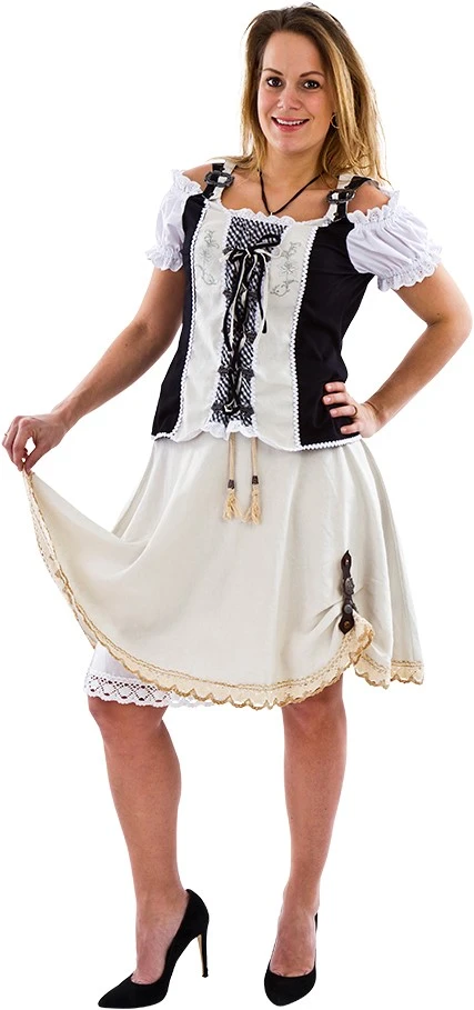 Deze mooie Tiroler trachten mieder met rok heeft een aangename lengte die tot op de knie valt en is zeer geschikt voor elk tirolerfest.