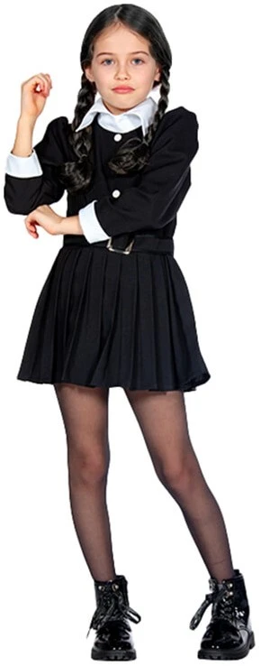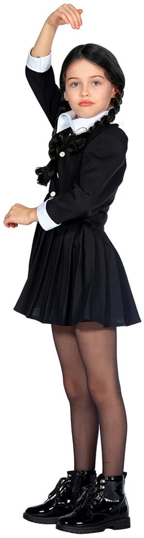 Is jouw dochter ook hele weg van de nieuwe Netflix serie Wednesday? Herken je het slimme, sarcastische en excentrieke dan is dit Wednesday Addams kostuum perfect!